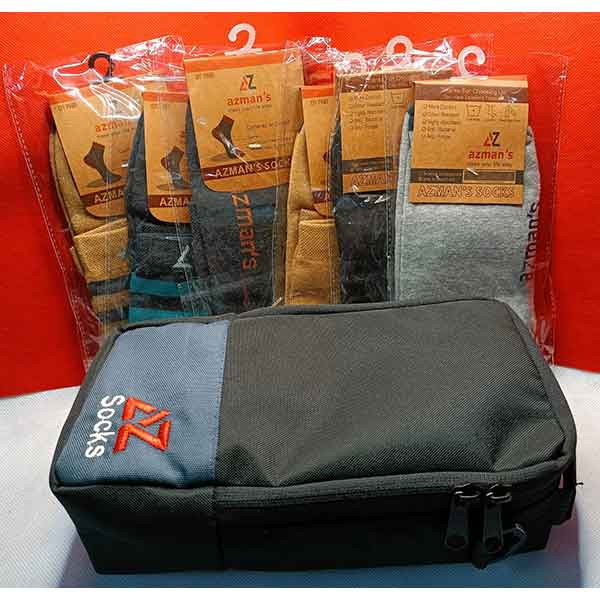 - Azman's Brand Six Pairs of Cotton Socks and an Attractive Storage Bag Current Price: Rs.640/